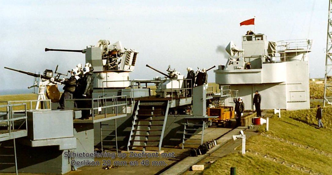 Dit alles had te maken met de luchtdoelschietoefeningen vanaf het schietemplacement Zeefront van MK Erfprins welke in de periode 1951 t/m 1985 plaatsvonden. Het geronk van het vliegtuig werd met bepaalde regelmaat overstemd door kanon en mitrailleur schoten wanneer vanaf de brug op het schietemplacement Zeefront het sein “vuur openen, richten op de manche” werd gegeven.